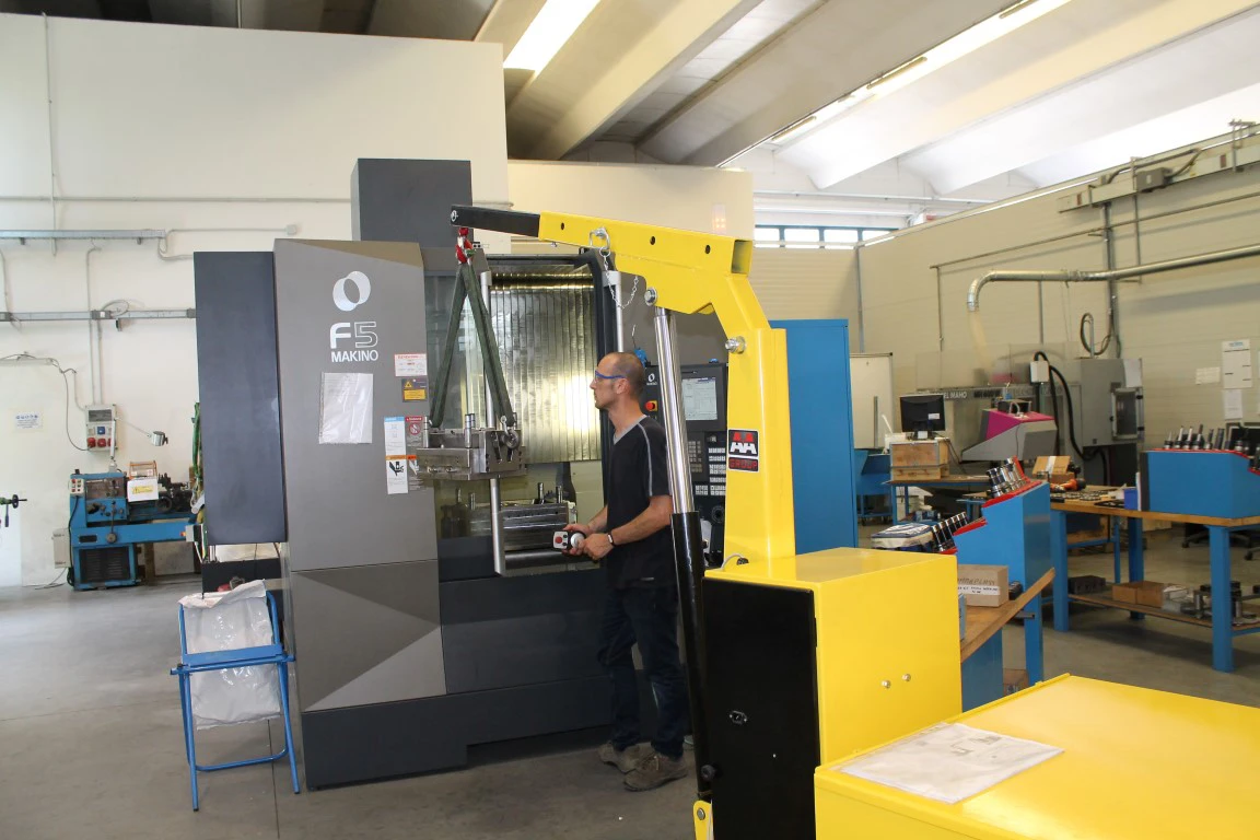 Grazie agli ingombri ridotti e alla capacità di sollevamento fino ai 2.000 kg, è possibile accedere facilmente alle zone più difficili da raggiungere sui macchinari, garantendo la massima precisione durante il cambio di attrezzature o la movimentazione degli stampi.